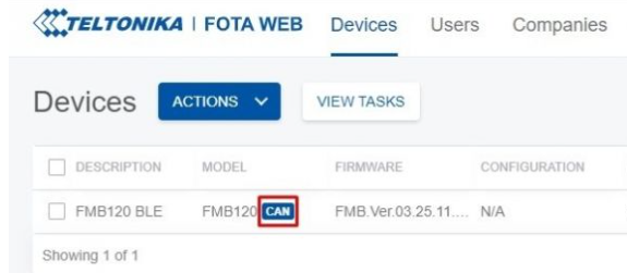 возможности отображения CAN модуля для FOTA Lite нет, такая возможность имеется только для FOTA WEB. Соответственно возможность отображения ALLCAN300 привязанных к устройствам FMB125 в FOTA WEB есть. Однако, необходимо чтобы на FMB устройствах была установлена прошивка указанная в данной статье: