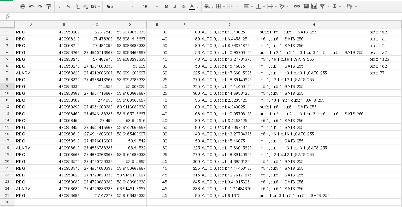 REG;1498025011;55.36581;25.2344533;0;97;ALT:21.6,hdop:0.6;in1:0,,SATS:17,io_caused:7;avl_driver:"0";;;