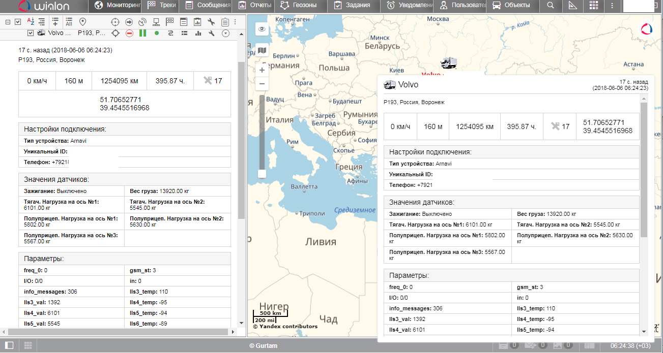 Данные для того, чтобы посмотреть, каким образом система работает с системой мониторинга транспорта на примере Wialon (на карту так же будут нанесены все пункты весо-габаритного контроля. В демо доступна одна рамка около Вологды в направлении на Череповец. Данный сервис будет доступен всем владельцам нашей системы в любой системе мониторинга):