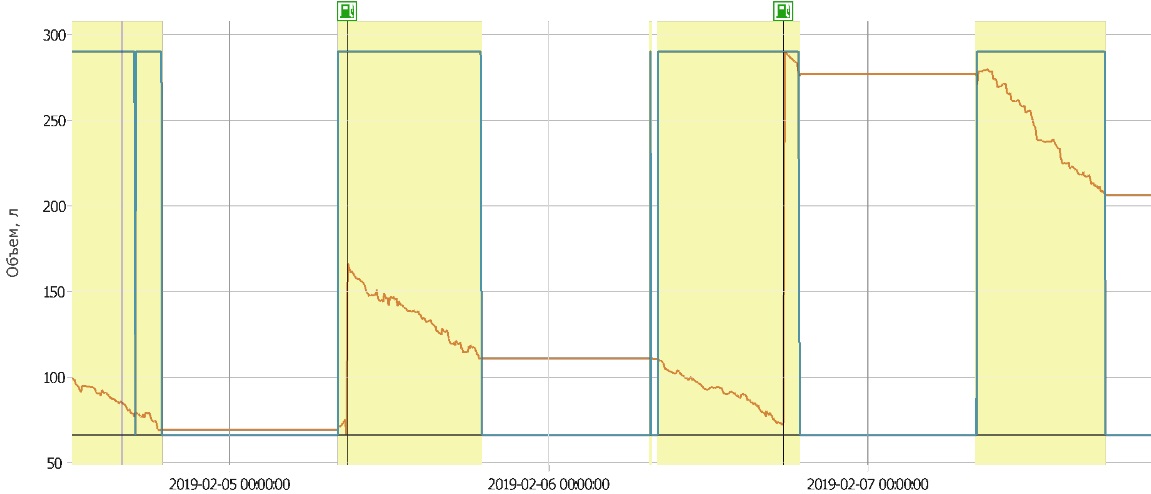 Поскольку ТС тратит топливо в движении (если по графику смотреть), попробуйте сделать контроль расхода по пробегу в том числе, показания и расхождения несколько изменятся.