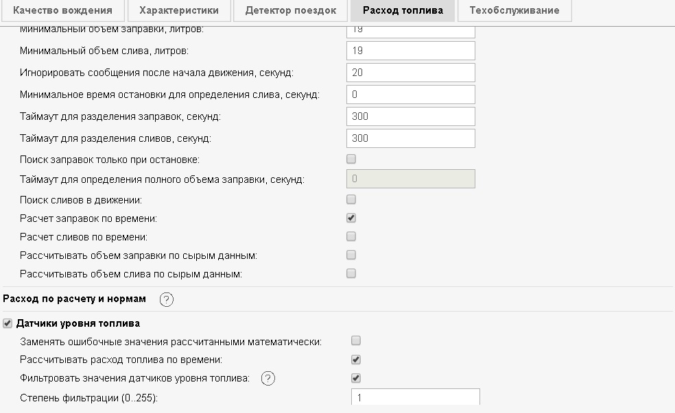 Что можно сделать? Очевидно, исправить работу датчика (трудный путь) или изменить настройки объекта так, чтобы "вылеты" данных не сильно влияли на расход. Например, стоит увеличить степень фильтрации и сгладить эти колебания. Это крайне действенный путь, который действительно помогает исправить ситуацию так, что "Потрачено по ДУТ в м/ч в движении" + "Потрачено по ДУТ в м/ч на х/х" станет равно "Потрачено по ДУТ в м/ч".