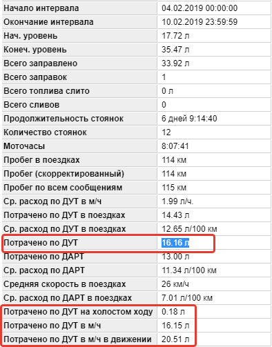 А расскажите, как у меня в "Потрачено по ДУТ в м/ч в движении" больше чем "Потрачено по ДУТ" ?