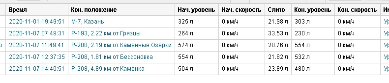 Судя по графику нет никаких сливов, а есть нормальный расход. Может алгоритм определения сливов не видит всех точек графика, а видит какие-то промежуточные точки с показаниями топлива. Видимо разницу между этими показаниями он и считает сливом...