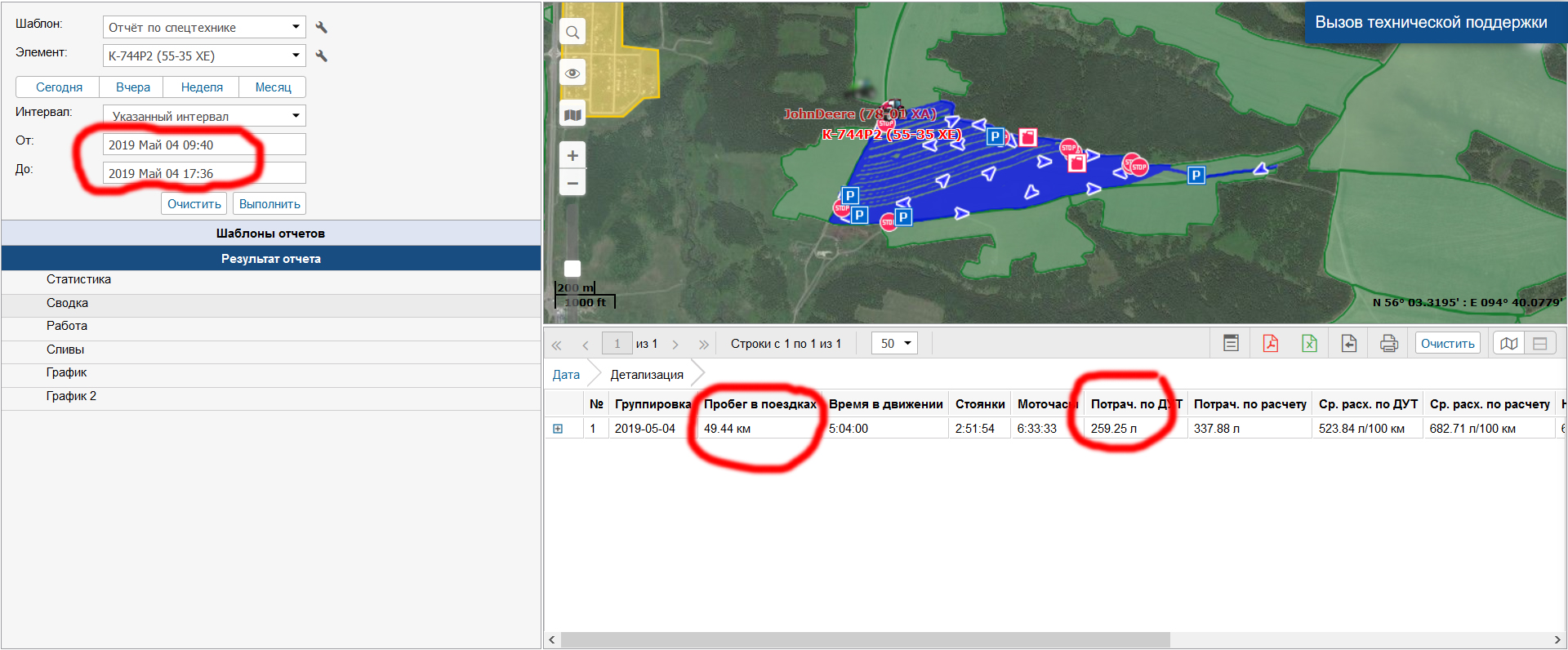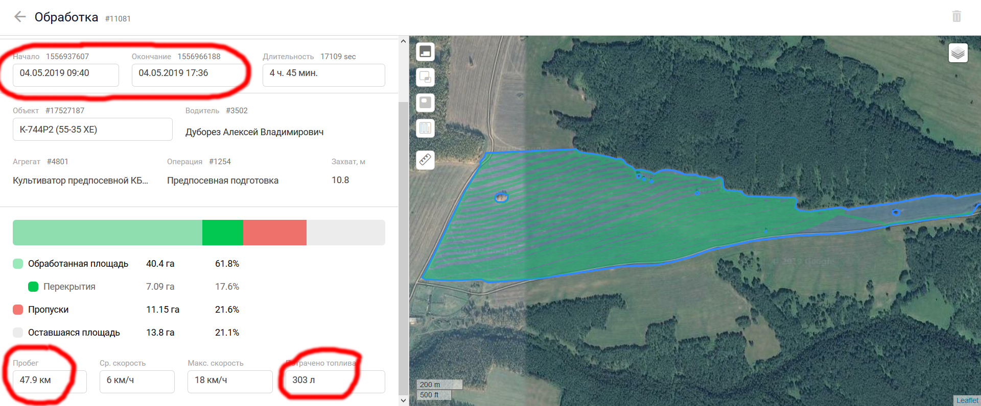 А вот ТС отработал на нескольких полях, а топливо только в одной обработке.