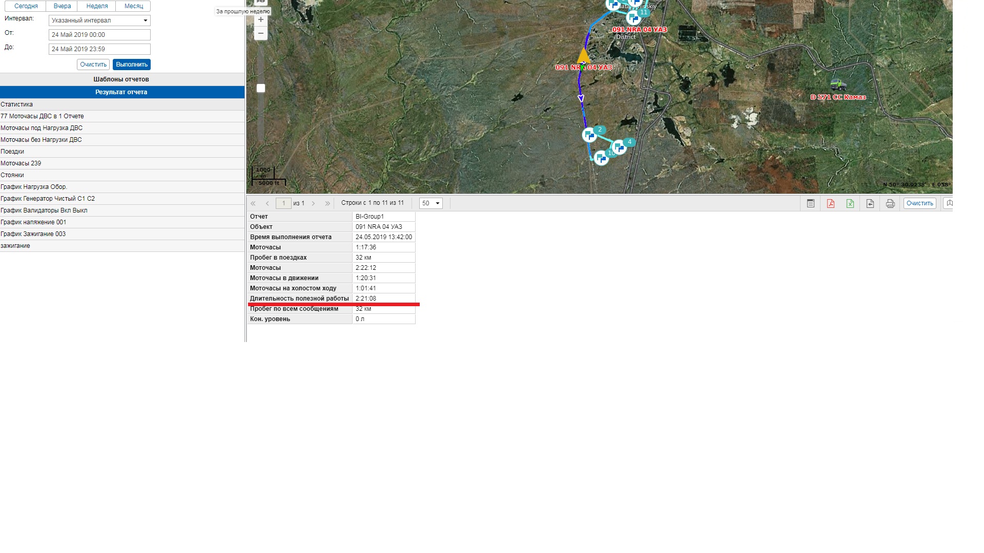 Есть вариант считать по доступным полям в статистике: "моточасы в движении" и "моточасы на холостом ходу". Только как вывести эти параметры в датчик, что бы видеть не в статистике а таблице отчета? Какой параметр можно прописать?