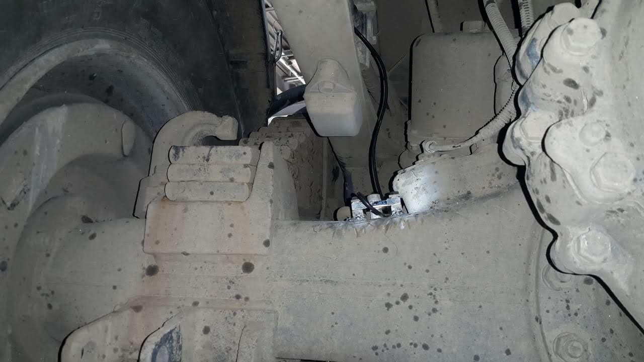 Ровно год назад в начале сентября установили систему: на тягаче два датчика деформации на ведущие мосты и два датчика давления в подвеску трала. Соответственно нагрузки на оси тягача определяются по прогибу мостов, а нагрузки на оси трала по изменению давления под нагрузкой.