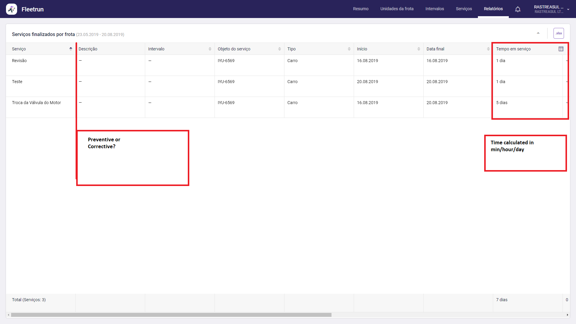 3) In Fleetrun we do not speak such terms as 'preventive' or "corrective" maintenance. However, we distinguish between the services that are performed per some interval (which is preventive in your case) and unplanned (which is corrective in your case). Thus, in case in reports system displays the name of the interval this is preventive maintenance. In case there is no name of a service displayed this is corrective maintenance.
