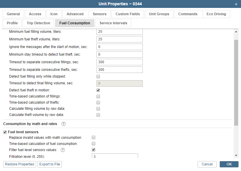 I've tried changing but it didn't solve our problem, the only one that could solve was by changing the minimum filling/theft volume, but if I adjust this with a higher value, we are going to have other problems like not detecting the real fillings/thefts.