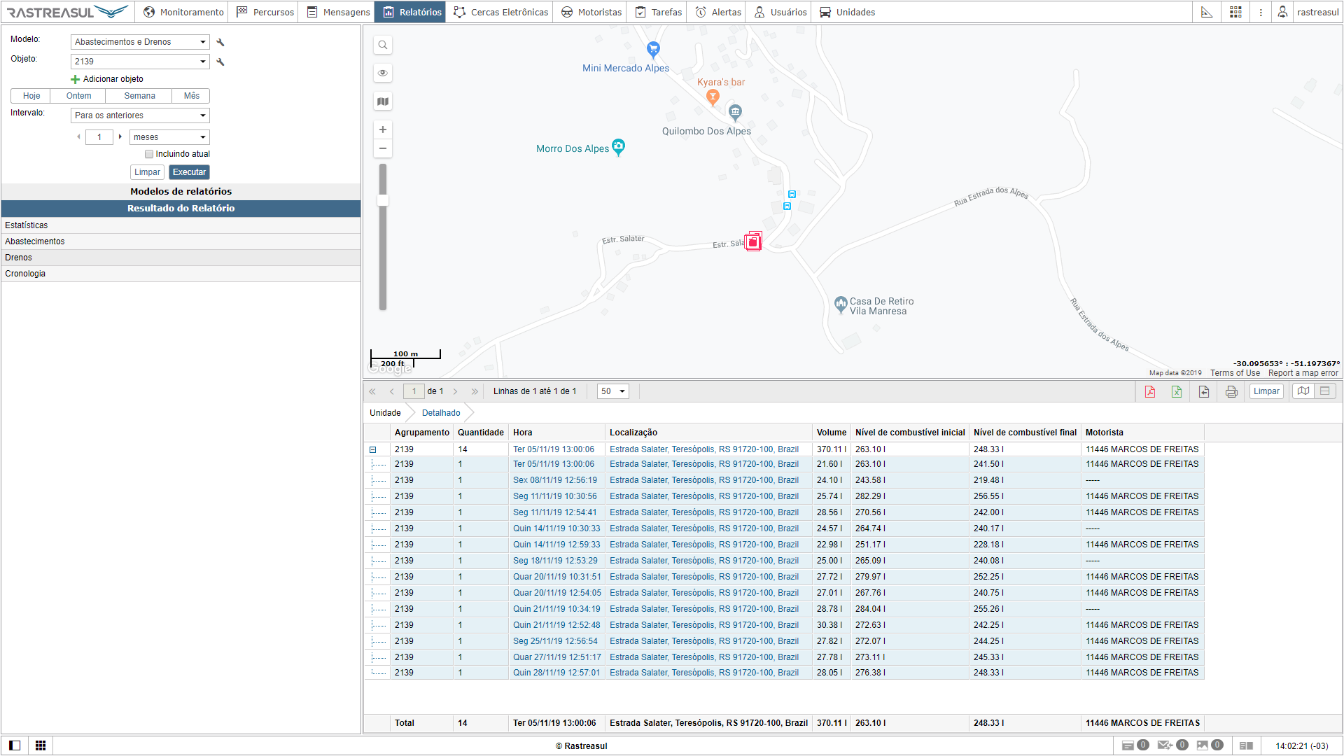 Although this solves the problem with fillings and thefts, it doesn't solve with fuel consumption and there is also an a particularity: the icons of fillings and thefts still appears on the map because it is based on the sensors (screenshot).