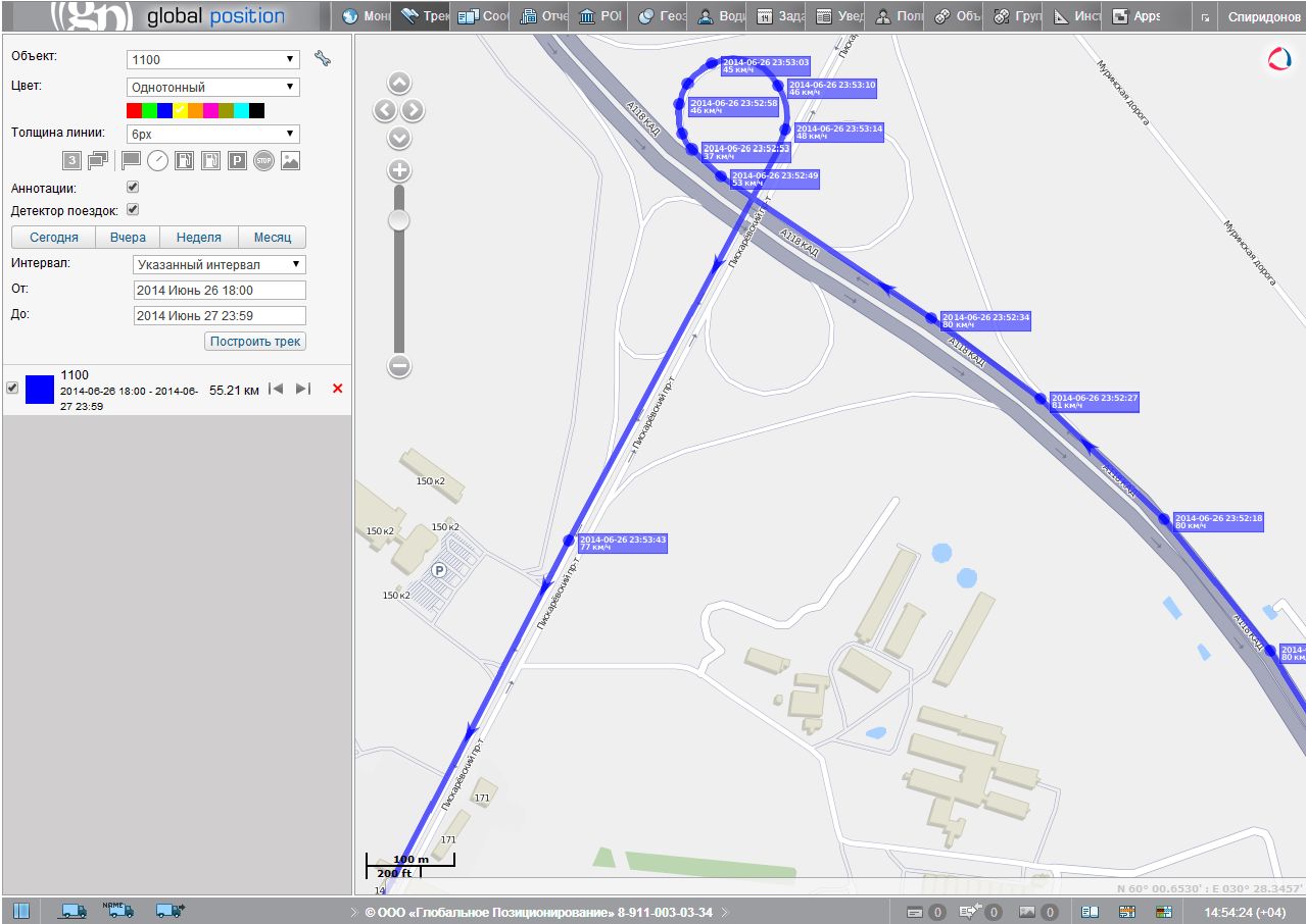 Период - 10 сек., дистанция 100 м., угол поворота 10 град., отправляются каждые 30 сек.