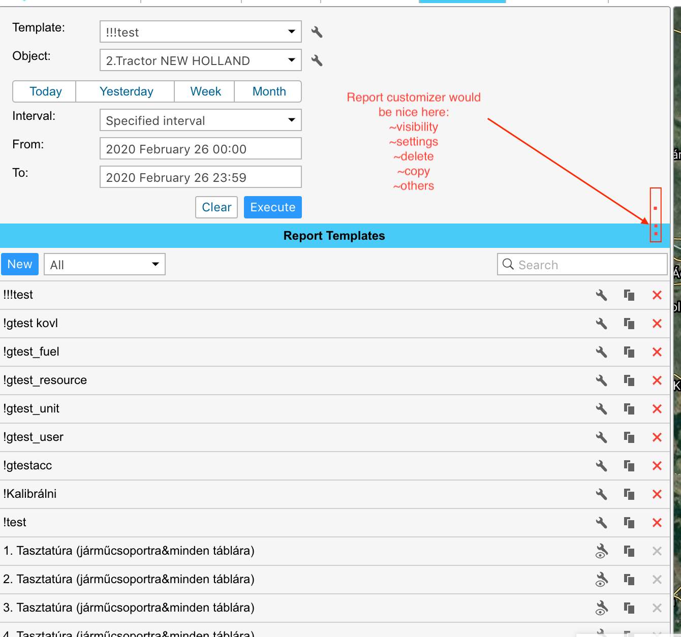 Other functions (copying, deleting, editing) should be located directly next to the report (as it is implemented now) for further rapid use.