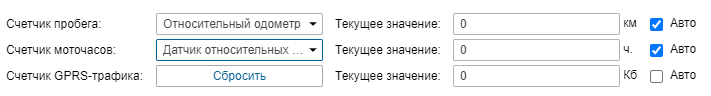 Значения при использовании относительных датчиков (моточасы, пробег) не накапливаются в счетчиках, если датчики требуют параметры из предыдущего сообщения. Такие датчики можно использовать только в отчетах (не в счетчиках и онлайн-уведомлениях).