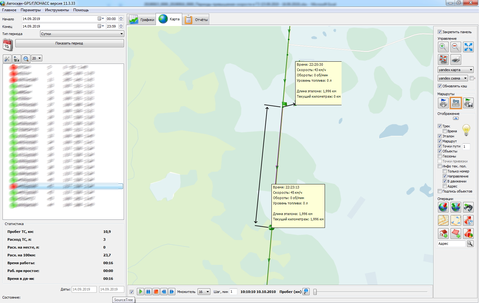 А вот ниже специально сегодня сделал по одной из машин нашего клиента  отчет в системе АвтоГРАФ™, в которую наша машина ретранслируется.