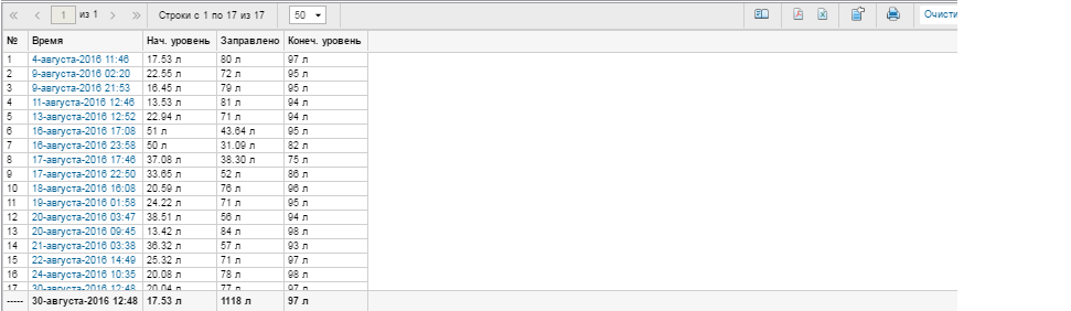 Детальная информация о расходе топлива, совершенных заправках и сливах. Позволит быть в курсе того, как расходуется топливо на объекте, все ли заправки соответствуют документам, не было ли несанкционированного расхода топлива. Графики помогут визуально оценить изменение уровня топлива, интенсивность расхода в различное время суток.