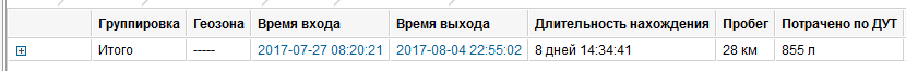 Подробные сведения о том, сколько и когда двигался объект, где останавливался и на сколько.