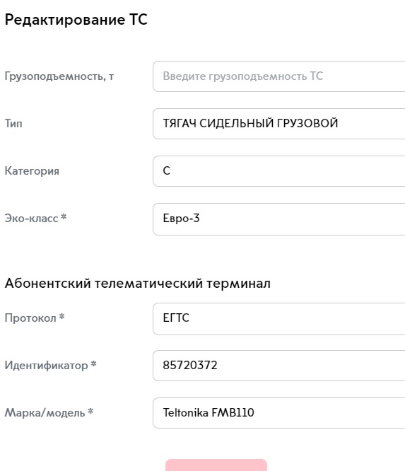 Добрый день. Пытаюсь редактировать данные ТС в личном кабинете клиента (изменить длинный идентификатор на короткий), но программа не дает ничего изменить и выдает сообщение "ТС с таким номером уже зарегистрировано." Я не создаю новое ТС, а пытаюсь отредактировать существующее. Сталкивался кто-нибудь? Как быть в такой ситуации? Пытаться удалить данное ТС и создавать новое с коротким идентификатором?