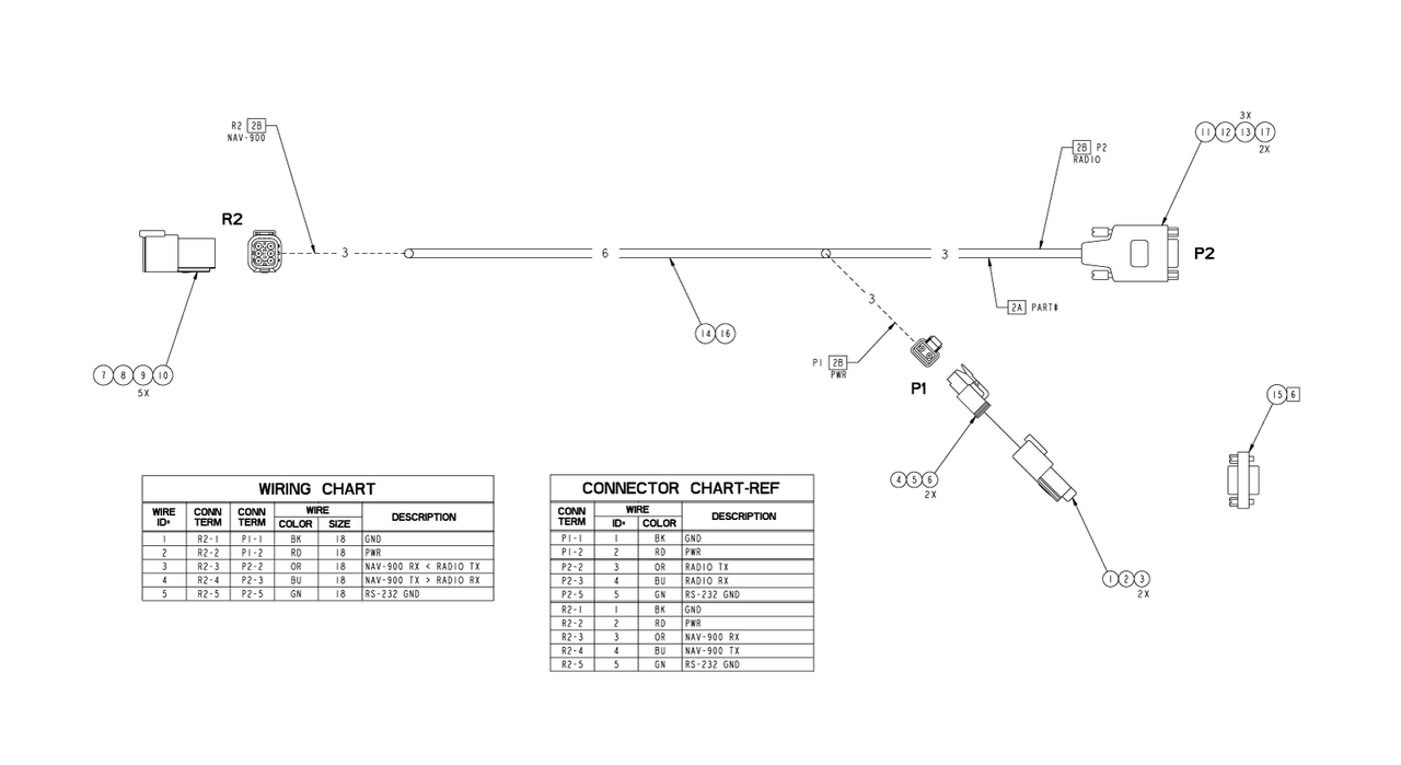 Cable Assy, NAV-900, RTK Radio, DTM06 to DE9, Adapter P/N 113633