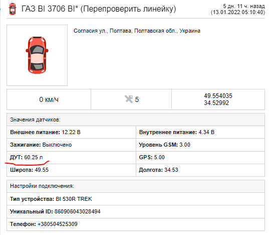 Подскажите пжл, не передаются показания топлива (а точнее зависли), трекер BI-530 R TREK, ДУТ BI FLSENSOR, параметр указал param112
