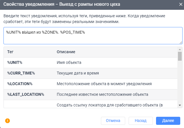 Не смог разобраться, либо нет такой функции. Как добавить в уведомление типа: %UNIT% вышел из %ZONE%. %POS_TIME% фразу с расчётом времени пребывания в геозоне после последнего входа? Чтоб выглядело так: