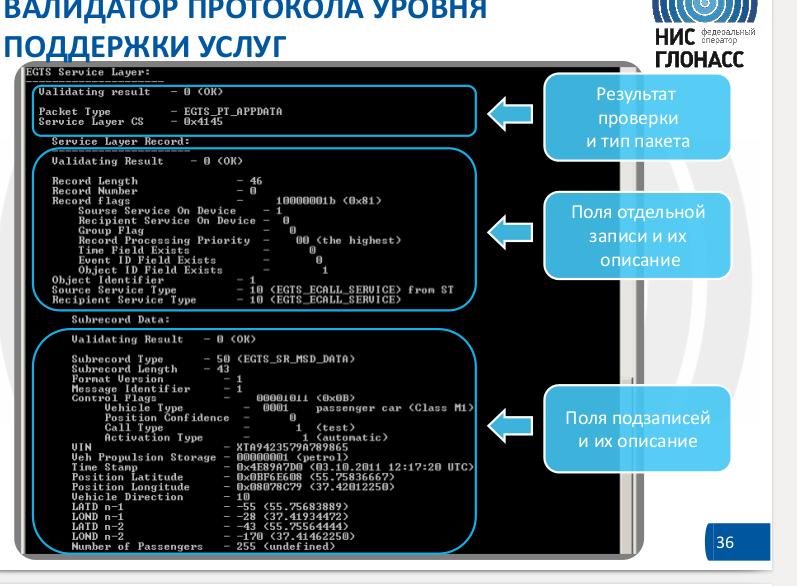 - исполняемые приложения MS Windows 7, предназначенные для проверки корректности заполнения пакетов данных (EGTS_Validator_v.1.1.3.1.rar).Данные материалы могут использоваться без каких-либо ограничений при разработке автомобильных систем “ЭРА-ГЛОНАСС”. ОАО “НИС” оформляет права на представленные программы для ЭВМ.