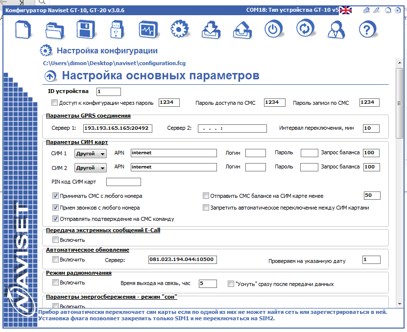 COM99 1234,81.23.194.44,10500,0 Обновление ПО по смс