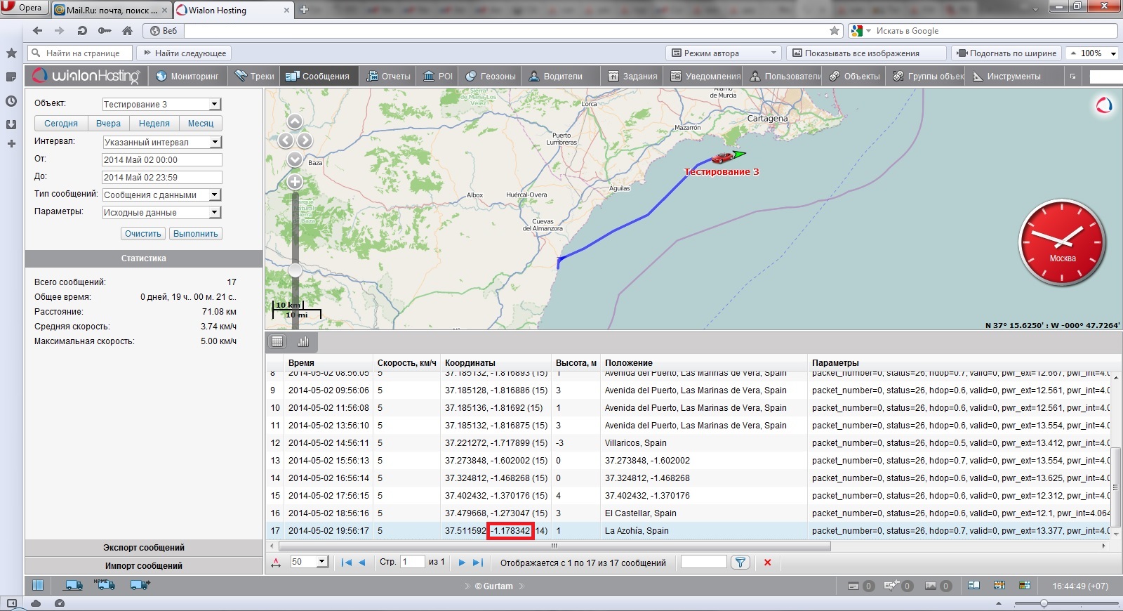Трекер выходит на связь высылает несколько сообщений после чего связь с сервером прерывается...