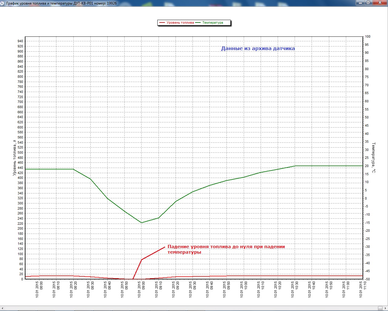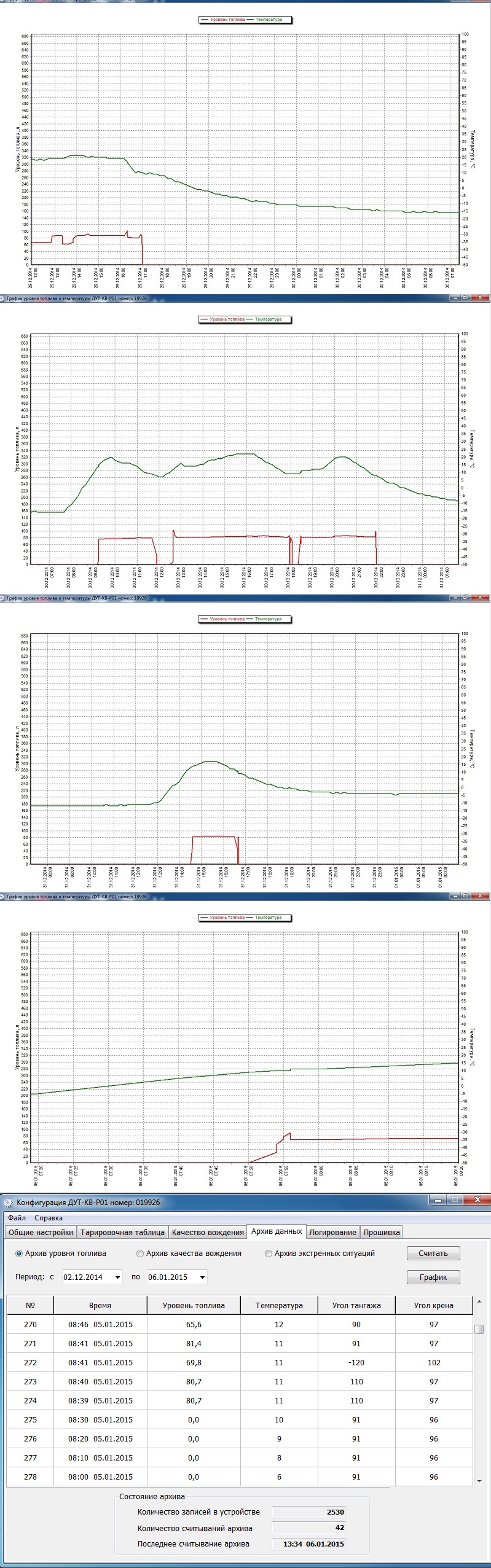 Датчик имеет встроенные часы реального времени и внутреннюю память. Все измеренные данные датчик хранит в собственной памяти за последние 60 суток. Способность датчика работать без терминала существенно снижает начальные затраты на установку систем контроля топлива и качества вождения автотехники.