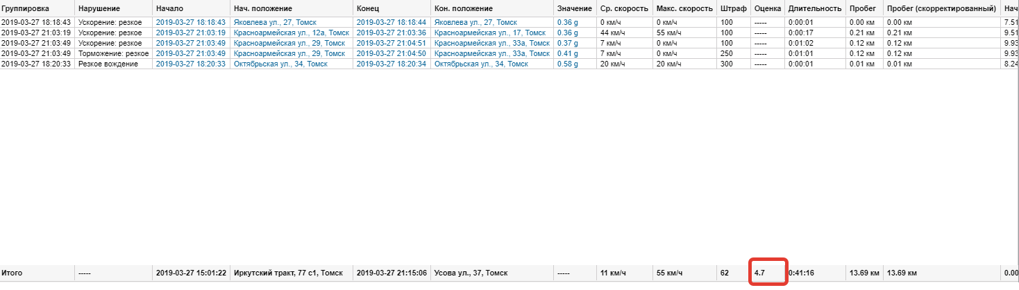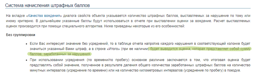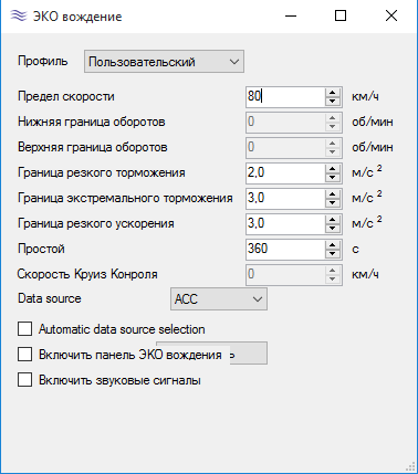Отметим, что здесь заданы критерии качества вождения только на основании ускорения/торможения, естественно, ничто не мешает добавить в список и другие критерии - например, по превышениям скорости.
