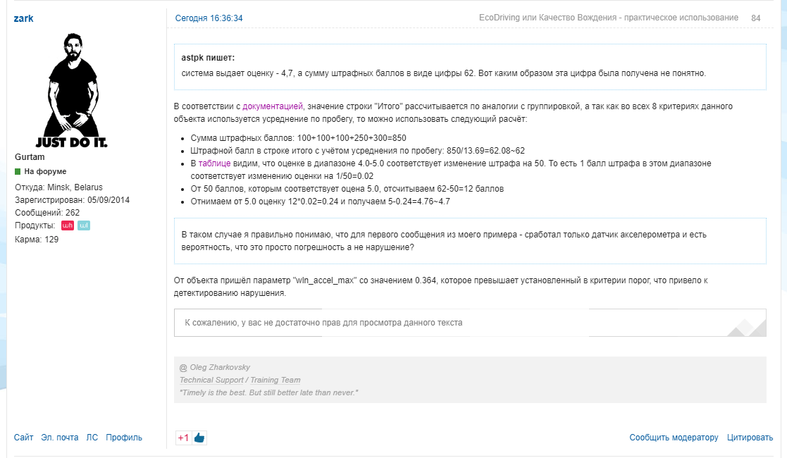 Начиная с прошивки 2.15 в состав отчетов включены параметры максимального ускорения и торможения: контроллер непрерывно анализирует показания встроенного акселерометра и навигационного приемника и в каждый отчет вставляет параметры wln_acc_max и wln_brk_max, в которых содержатся соответственно максимальное устроение и максимальное торможение за период от предыдущего отчета (точки трека). Благодаря этому контроллер не допустит пропусков нарушений по разгону и торможению вне зависимости от установленной периодичности формирования точек трека.