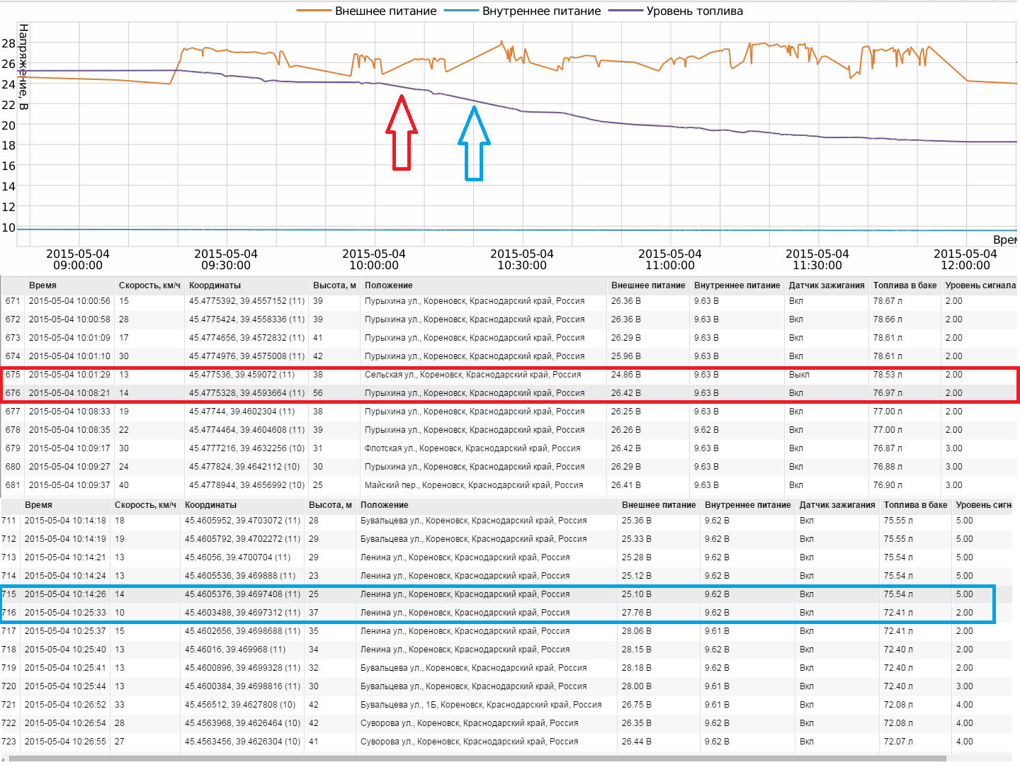 На графиках видны сливы, они все рядом с магазинами где машина выгружает товар.