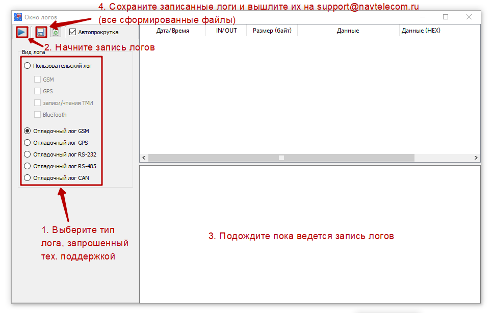 1. Подключить устройство к конфигуратору по USB (удаленно логи снять нельзя).
