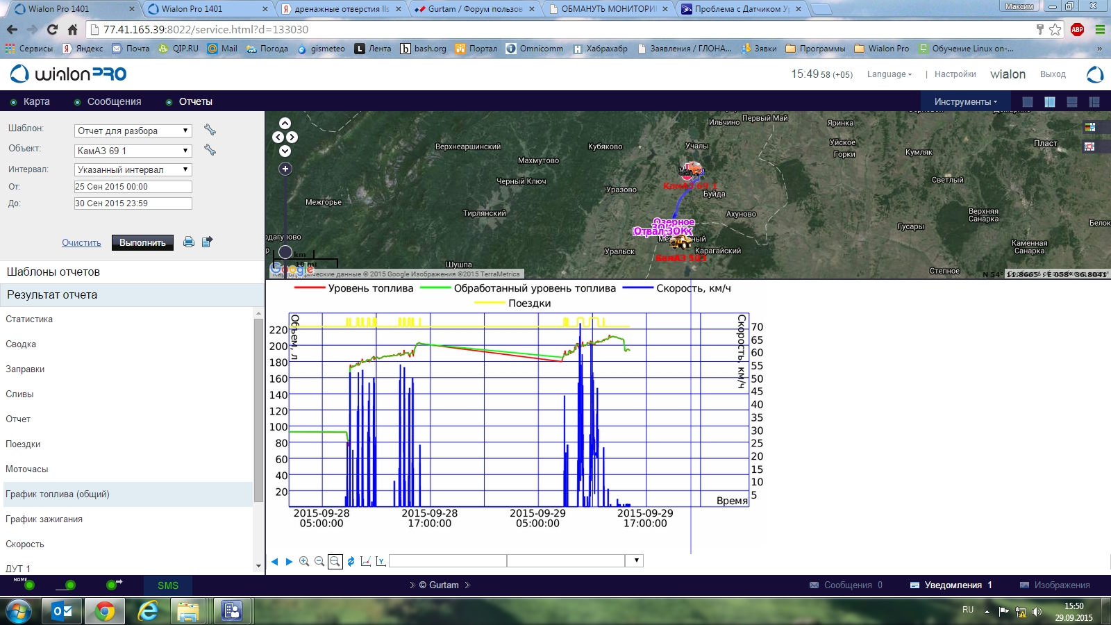 Здравствуйте. Возникла проблема с показаниями. На автомобиле КамАЗ установлена система мониторинга транспорта, терминал - omnicom optim, дут - omnicomm LLS 20160. При просмотре графиков топлива видно что при движении автомобиля повышается уровень топлива, хотя должен понижаться. После снятия, продувки, очередной настройки дут (пустой-полный) 1-2 дня работает корректно, далее начинаются аналогичные глюки. В чем может быть проблема? Бак чистили и пропаривали, результат нулевой