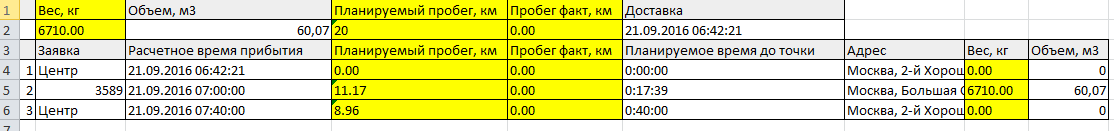 Последовательность и количество заявок меняется ежедневно на каждое авто.