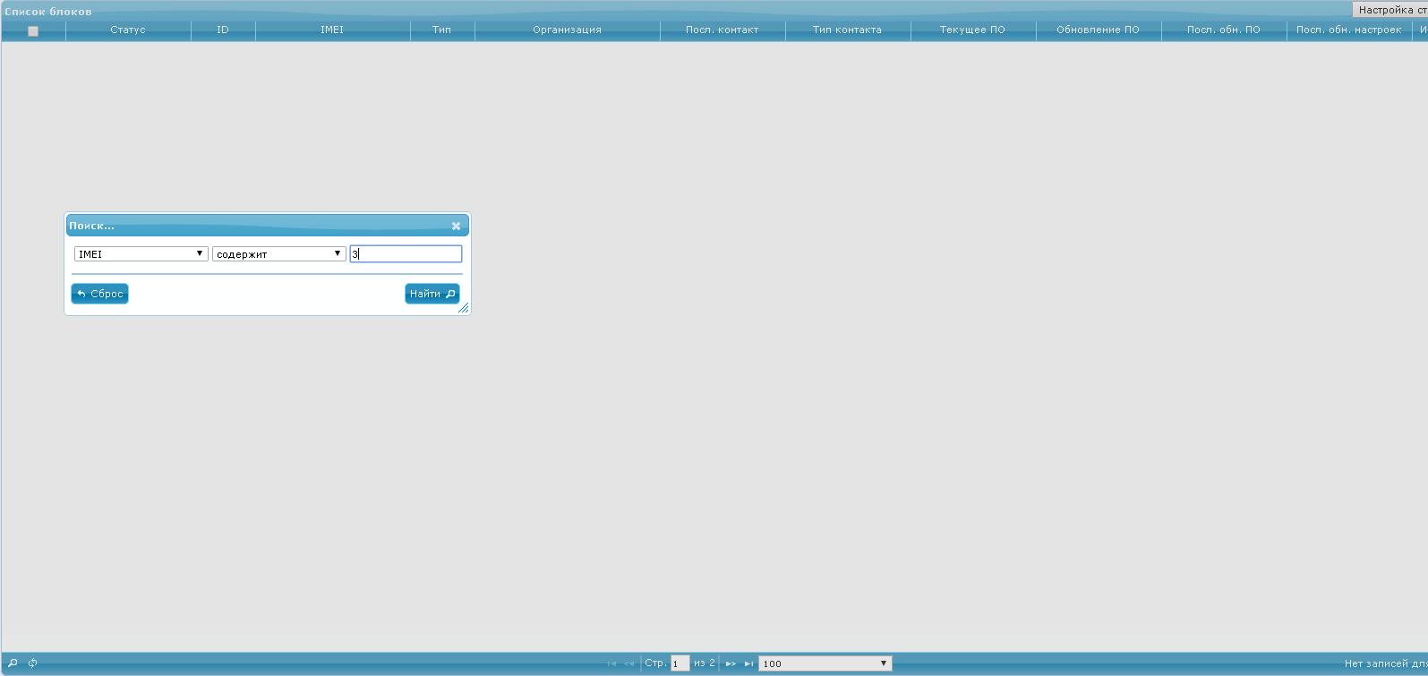 поиск в WEB конфигураторе работает только при полном вводе IMEI или ID