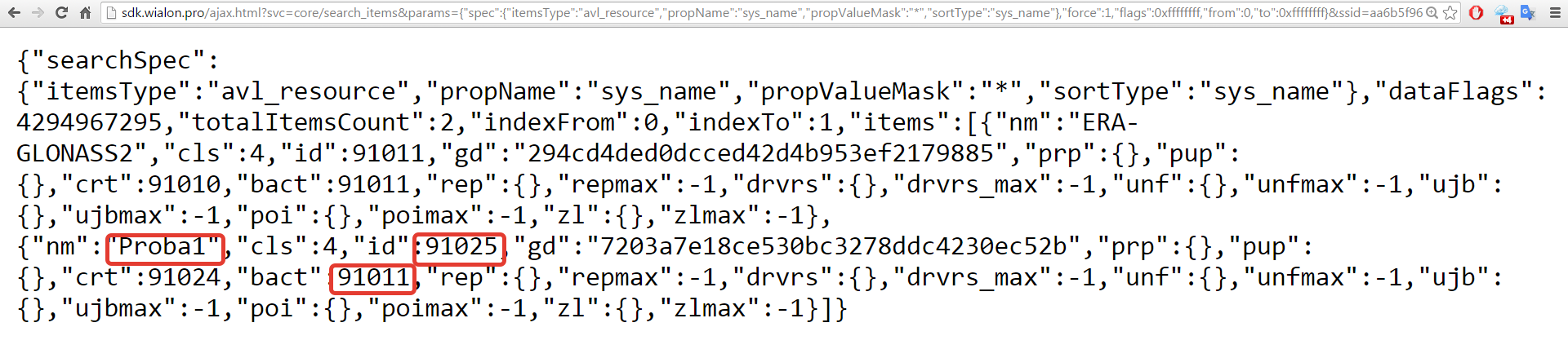 Но при получении списка ресурсов у учетной записи Proba1 id != bact. (скрин)