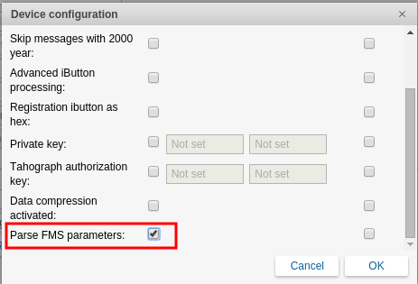 To activate this opportunity, please enable the option "Parse FMS parameters" in device configuration window: