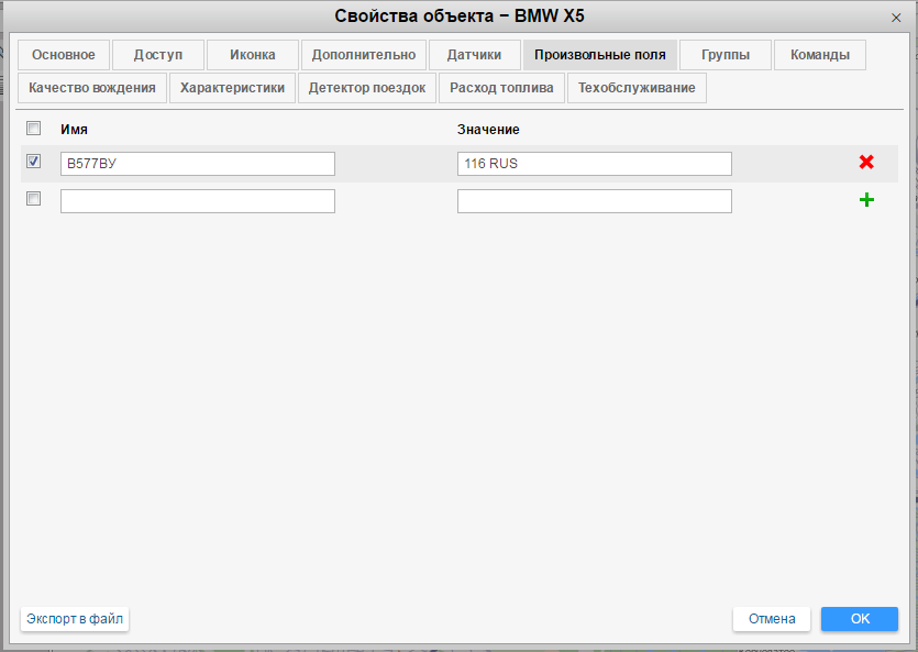 В селекте объектов к имени добавил имя и значение первого произвольного поля объекта, если задано.