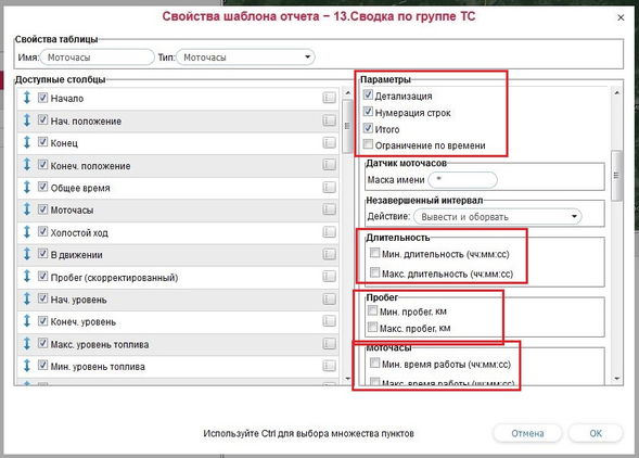 Куда удобнее когда в том же окне, где выбирается интервал времени, гаражный номер, находилась бы данная опция и много других, которые встречаются в настройках отчётов.