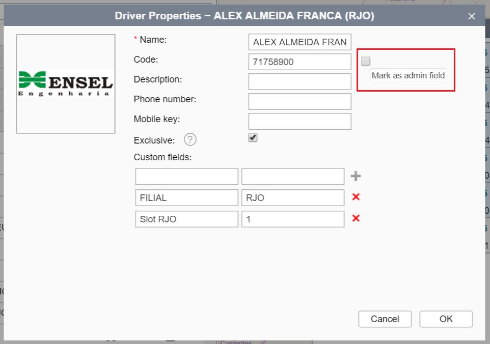 Topic: Hide "Code" field - Driver's Properties - Access Rights