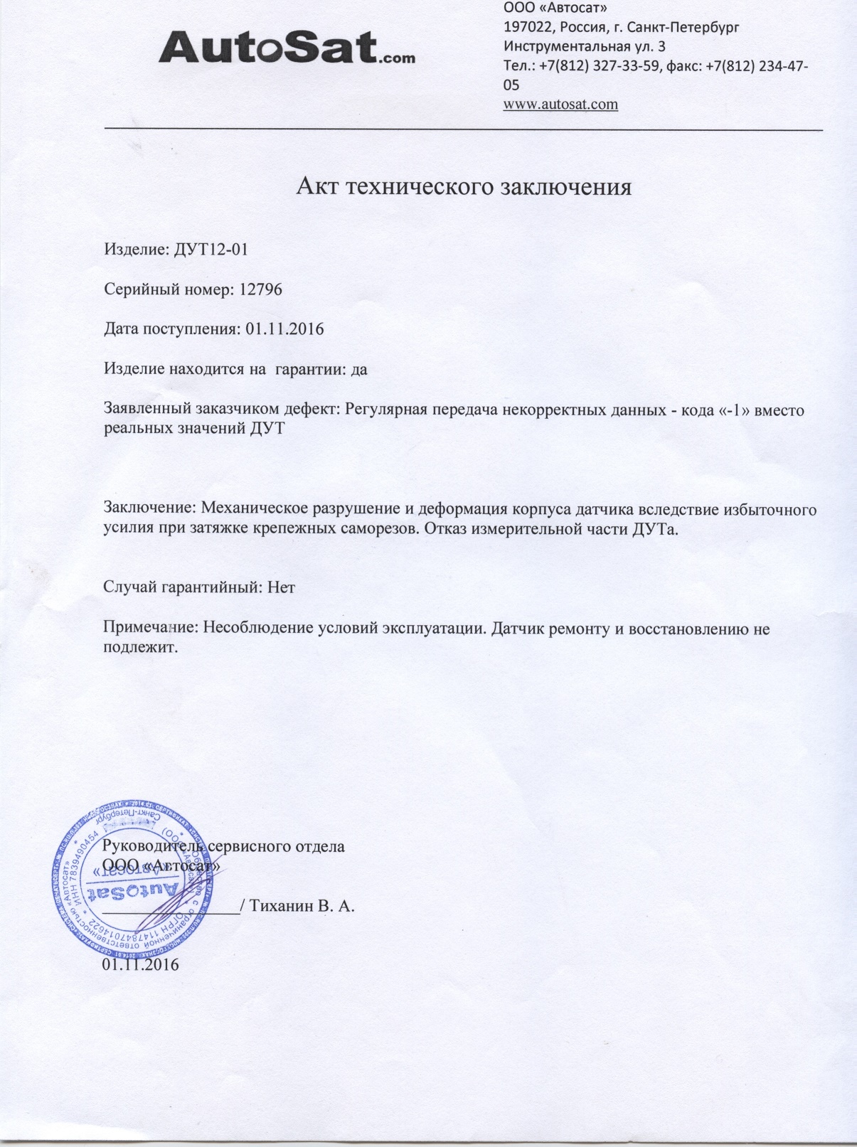 Сначала оторопел. Теперь делюсь актом технического заключения AutoSat