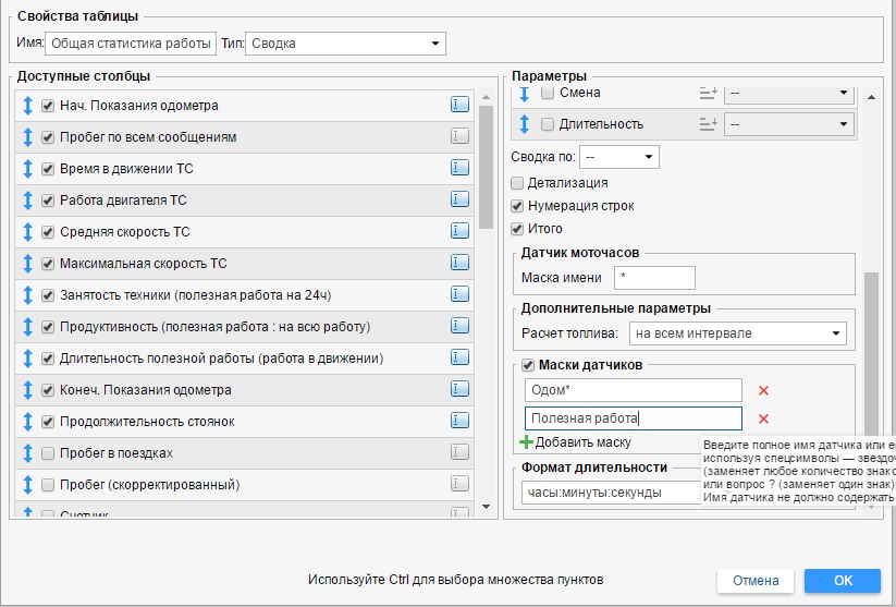 Новый мастер расчета создает датчики полезной работы двигателя (пример расход по нормам).