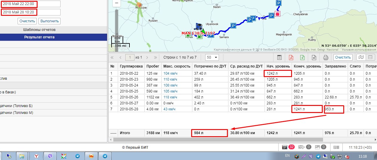 Загадка, которую пока не можем разгадать.. после заправки до полных баков с этого момента составлен отчет, ТС сделала рейс. Вернувшись на базу снова было заправлено до полных баков. Отчет составлен в закрытом периоде. Вопрос: почему такая разница между потраченным топливом и последней заправкой до полного?
