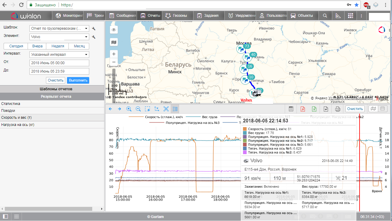 - Возможность предоставить данные о нагрузке и массе в исполнительные органы (выгрузка отчета возможна на любое время и дату).