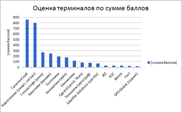 Итоги : Подсчет баллов производился путем суммирования оценок по всем критериям. Рейтинг составлен по сумме баллов. Первое место за терминалами от компании ГалилеоСкай. Совсем не много от ни отстали Навтелеком.  На третьем месте Умка, с которыми мы никогда не работали . Узнать суммы баллов по конкретным критериям можно из таблицы: