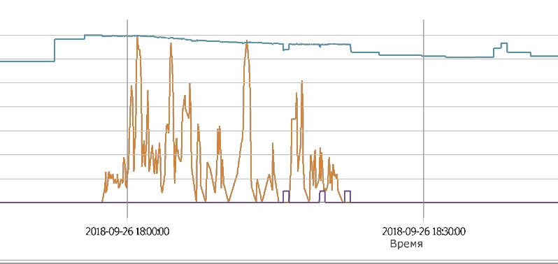 А что это на графике? Я так понимаю, у вас зажигание дискретно (ВКЛ/ВЫКЛ). Если посмотреть сообщения - значения датчика корректные (выключен при выключении зажигания, включен при включении)?