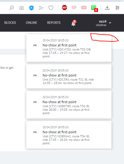 9. Notification at ONLINE screen should have a permanent placeholder. When we enable all notifications, it will block the view of the line map and vital info behind them such as RIDES IN LIMBO. Dispatchers need fast and easy access to the RIDES IN LIMBO in order to take action. If we enable all notifications, these notification will block the RIDES IN LIMBO and becomes very annoying. We close a notification, a new notification pop-up. Close this, anew will come. Close again, another will come.