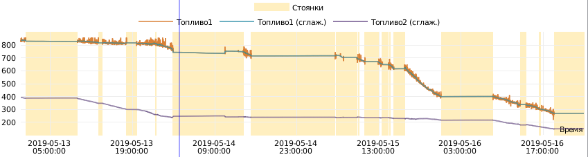 Датчики топлива Италон, поиск заправок только при остановке отключен, фильтрация 5 стоит.