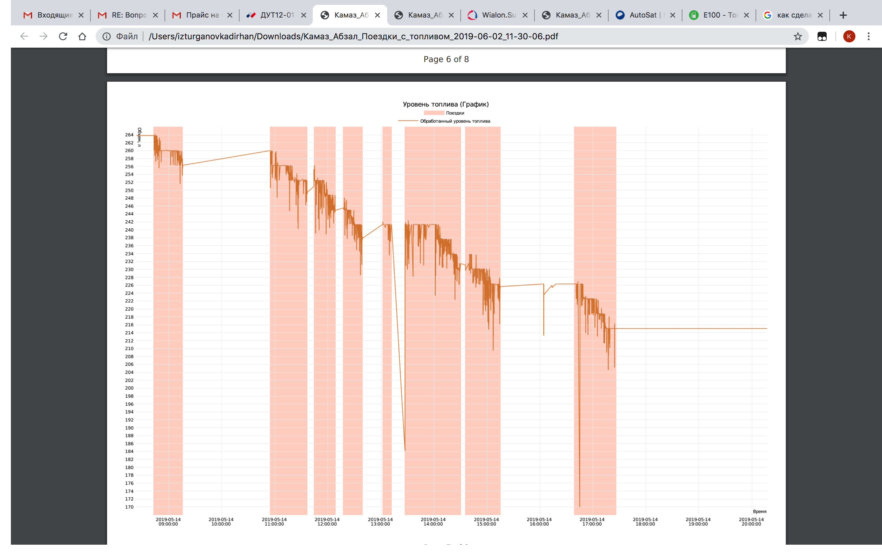 Стоит отметить, что на практике оказалось, что для сглаживания слива/заправки конкретно 2019 Май 14 16:43 хватает степени фильтрации "0". Однако для получения более гладкого графика вы можете подобрать и более высокое значение (обычно мы рекомендуем ставить значения выше 5-7, чтобы не искажать входные данные).