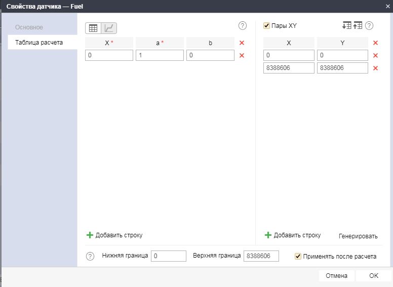 3. В произвольном датчике FUEL создал расчётную таблицу. Только я уверен, что я сделал это не правильно ((