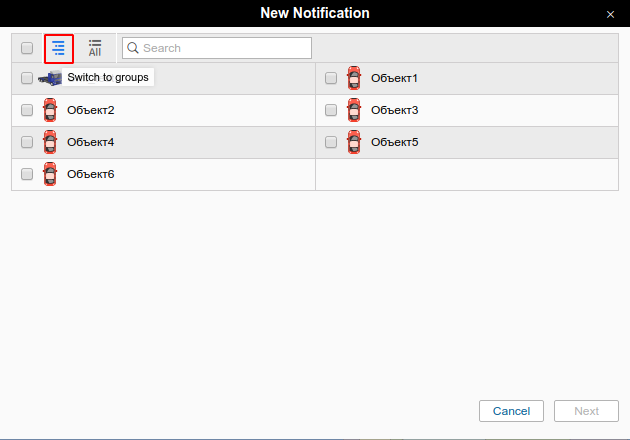 You can switch to groups and select those for which you want to set up a notification or create a job (i attach a screenshot).